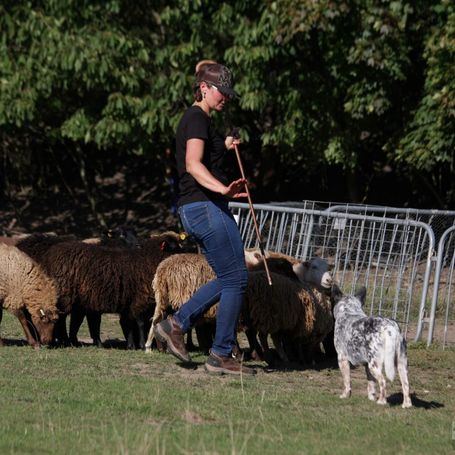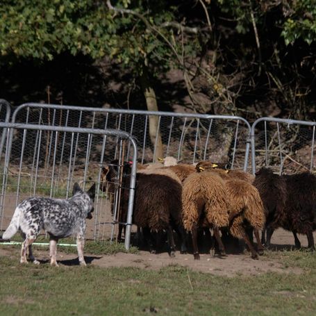 Mit ihr habe ich Ende 2024 das Hüten an Schafen begonnen. Sie hat sehr viel Spaß daran und wir beide nehmen nun auch regelmäßig an Prüfungen teil. Ab 2026 starten wir in der Klasse "FCI-IHT 2 Traditional Style".